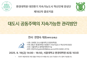 [환경대학원 192차 BK 콜로키움] 대도시 공동주택의 지속가능한 관리방안