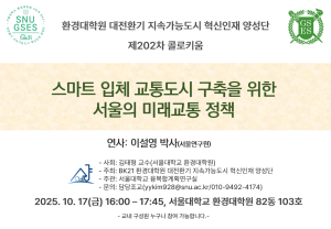 [환경대학원 대전환기 지속가능도시 혁신인재 양성단] 제202차 콜로키움 개최 안내 (10/17)